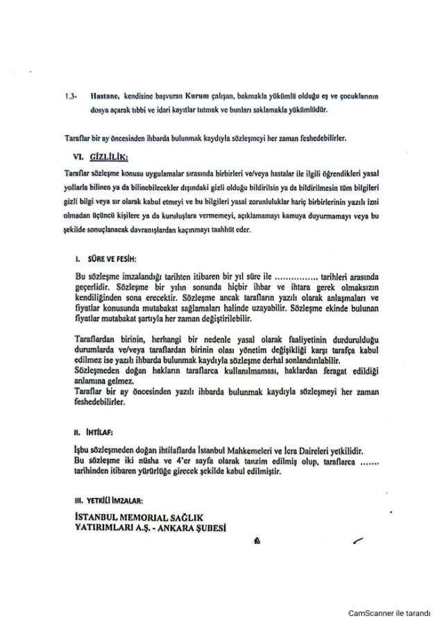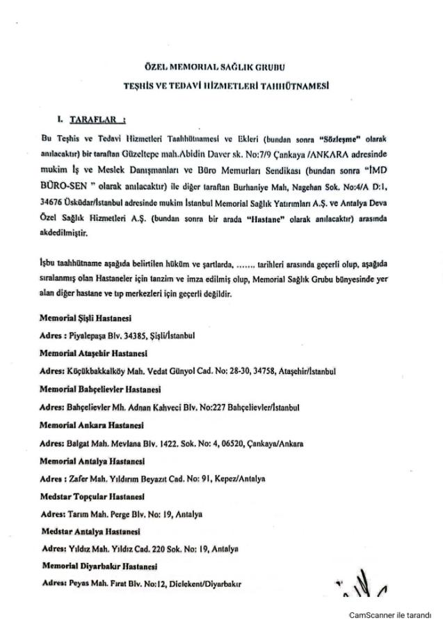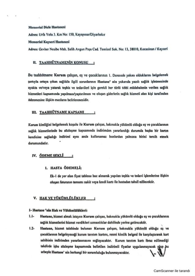 İşbu taahhütname aşağıda belirtilen hüküm ve şartlarda geçerli olup, aşağıda sıralanmış olan Hastaneler için tanzim ve imza edilmiş olup, Memorial Sağlık Grubu bünyesinde yer alan diğer hastane ve tıp merkezleri için geçerli değildir.