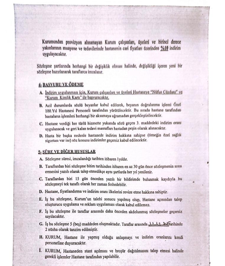 İMD Büro-Sen ile Özel 100. Yıl Hastaneleri arasında kurumsal indirim anlaşması yapılmıştır.